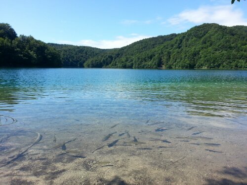 The National Park is a series of lakes that all feed into each other through waterfalls like terraces. There is no swimming or fishing allowed so the water is pristine, crystal clear and full of fish!